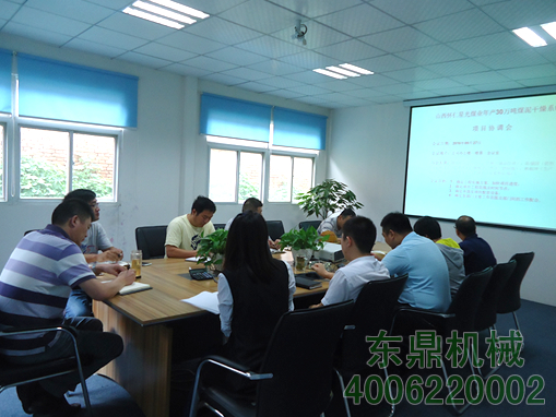 在一年一度的國慶佳節到來之際,東鼎機械銷售部的小伙子們用成績慶祝節日到來,我司高濕泥料烘干機生產線走進山西懷仁星光洗煤有限公司,該生產線可生產成品煤泥1000噸,經過快速脫水后的廢棄煤泥熱值提升1000多大卡,使價值發生質的改變成為冬季煤泥電廠的香餑餑,會議上技術部的同事們提出了改變泥料的升舉式送料方式,這一提議得到大家的高度贊賞,看似微不足道的改變一下可以為業主節約大量的鏟車油量消耗,新型供熱裝置噴燃爐防止爐膛結焦且能耗大大降低,圖為烘干機項目協調會議。